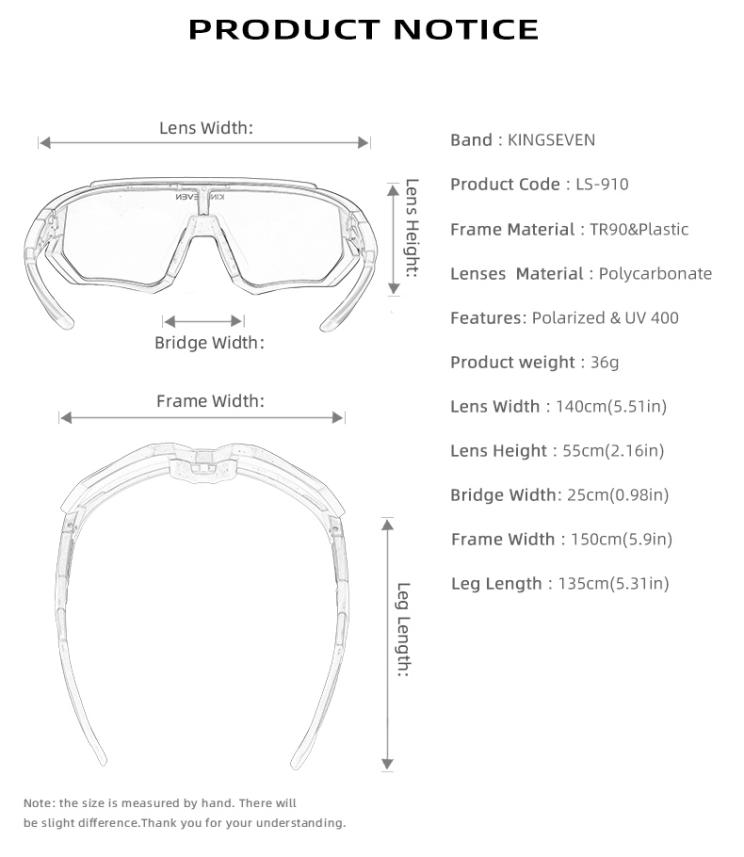 Tyto fotochromatické polarizované cyklistické brýle UV400 LS910 jsou novým dílem vytvořeným designéry týmu KINGSEVEN v únoru 2023, které splňuje jak sportovní ochranu, tak módní přehlídku.