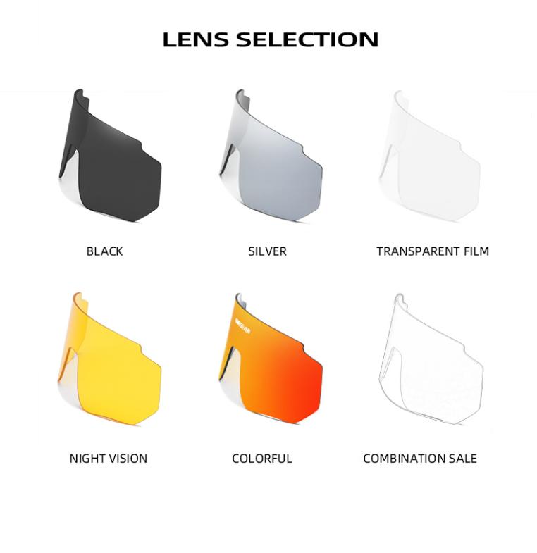 - Polarizovaná polykarbonátová čočka s vysokým rozlišením UV400, která dokáže účinně blokovat silné světlo. Čočku lze vybrat z různých funkcí, jako je šedá, zrcadlová barva, fotochromatická, noční vidění a průhlednost.
